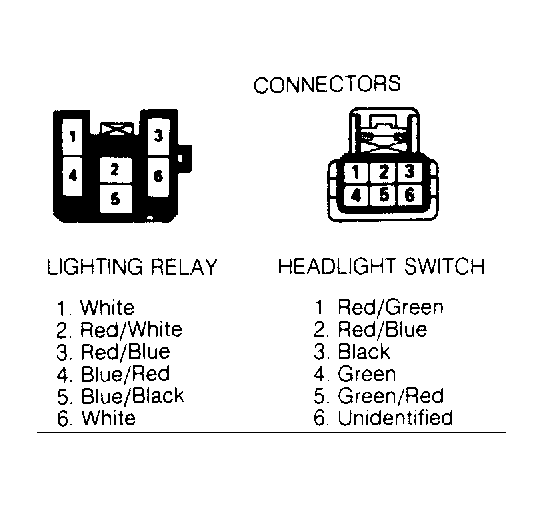 - If test light does light and headlights turn on, Red/Blue wiring circuit is good. If test light does not light, repair open in Red/Blue wiring circuit. Using ohmmeter, backprobe headlight switch harness connector terminal No. 3 (Black wire) and ground. If continuity is present, headlight switch ground circuit is good. Replace faulty headlight switch.