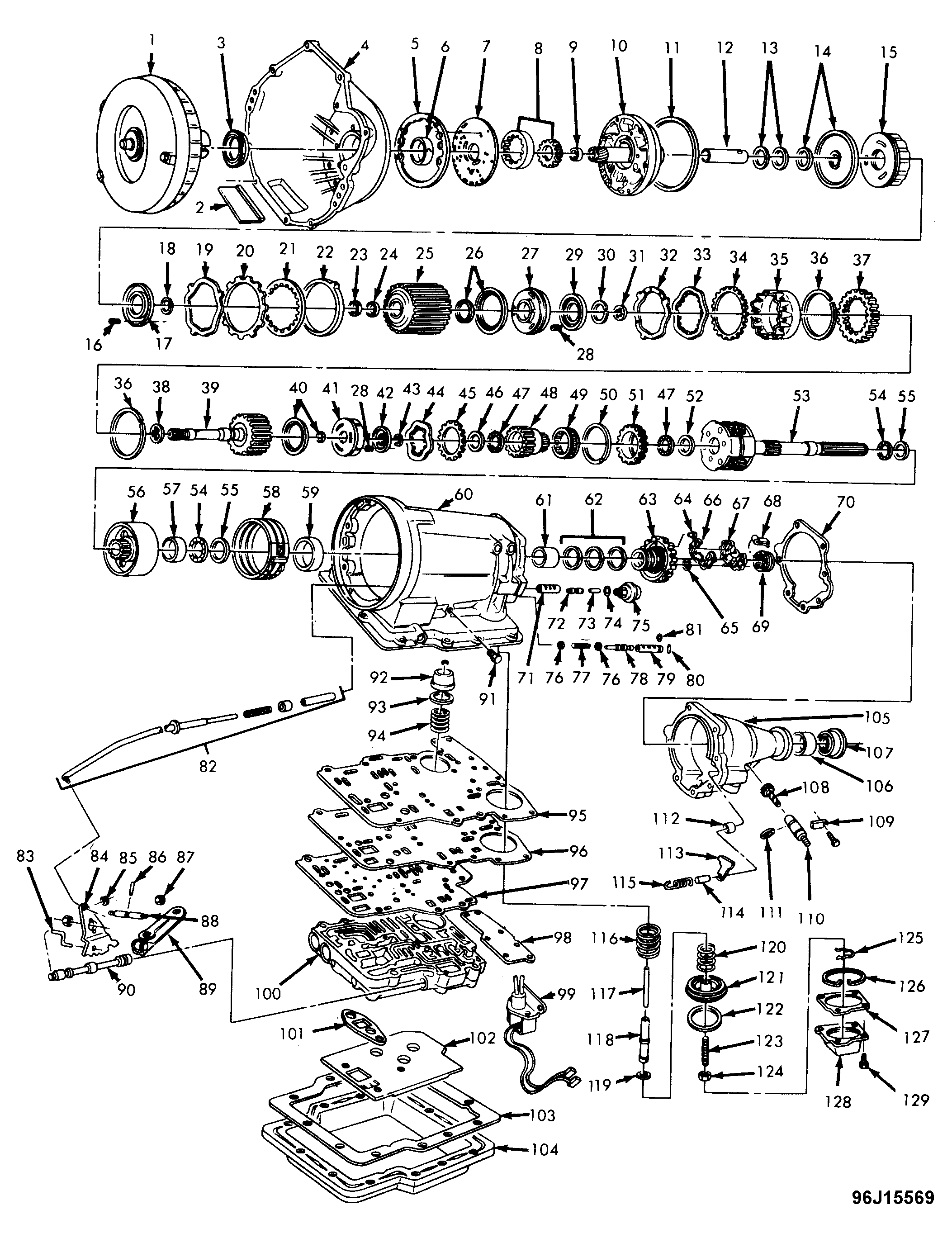 - Remove transmission crossmember side bolts and lower transmission slightly to gain access to line pressure take-off point. Connect a tachometer to engine and a pressure gauge to line pressure take-off point on left side of transmission case. See Item 91 in Figure .