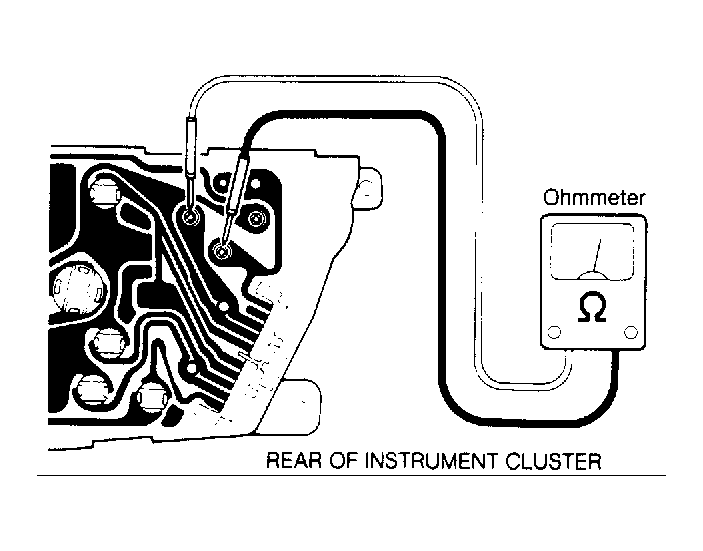 - If test light does light in step 1), but gauge does not fluctuate, remove instrument cluster. See INSTRUMENT CLUSTER . Attach ohmmeter leads across fuel gauge terminals on back of instrument cluster. See Fig 1 .