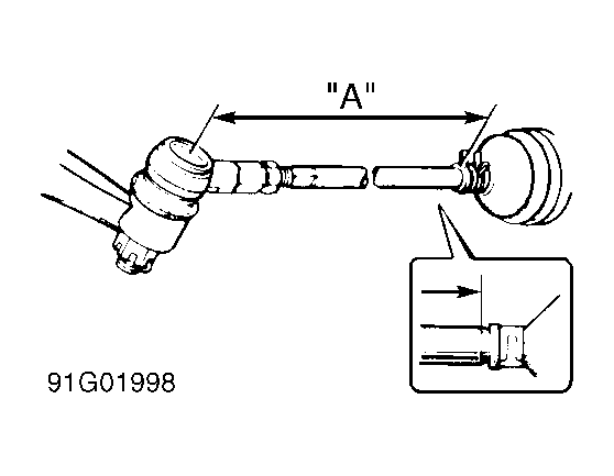 Adjust front wheel toe-in by changing tie rod length. Loosen right and left tie rod end lock nuts. Turn right and left tie rods by the same amount to adjust toe-in to specification. See appropriate table under WHEEL ALIGNMENT SPECIFICATIONS . Right and left tie rod length "A" should be the same. See Figure. Tighten tie rod end nuts to specification. See TORQUE SPECIFICATIONS .