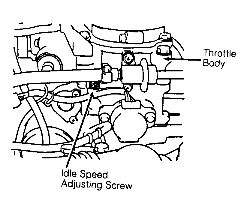 - Note idle speed. Idle speed should be within specification. See IDLE SPEED SPECIFICATIONS table. If idle speed requires adjustment, remove plug and rotate idle speed adjusting screw on throttle body to obtain correct idle speed. See Fig 1