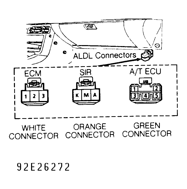 WARNING: Ensure jumper wire is connected to ALDL White connector. A connector for Supplemental Inflatable Restraint (SIR) system and Automatic Transaxle Control Unit is located next to ALDL connector.