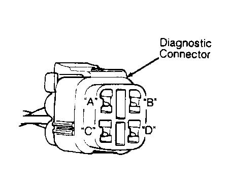 2. Remove cap from diagnostic connector, located near fusible link box by the battery. Connect jumper wire between terminals "C" (Black wire) and "D" (Blue/Red wire) of diagnostic connector. See Fig 1 .
