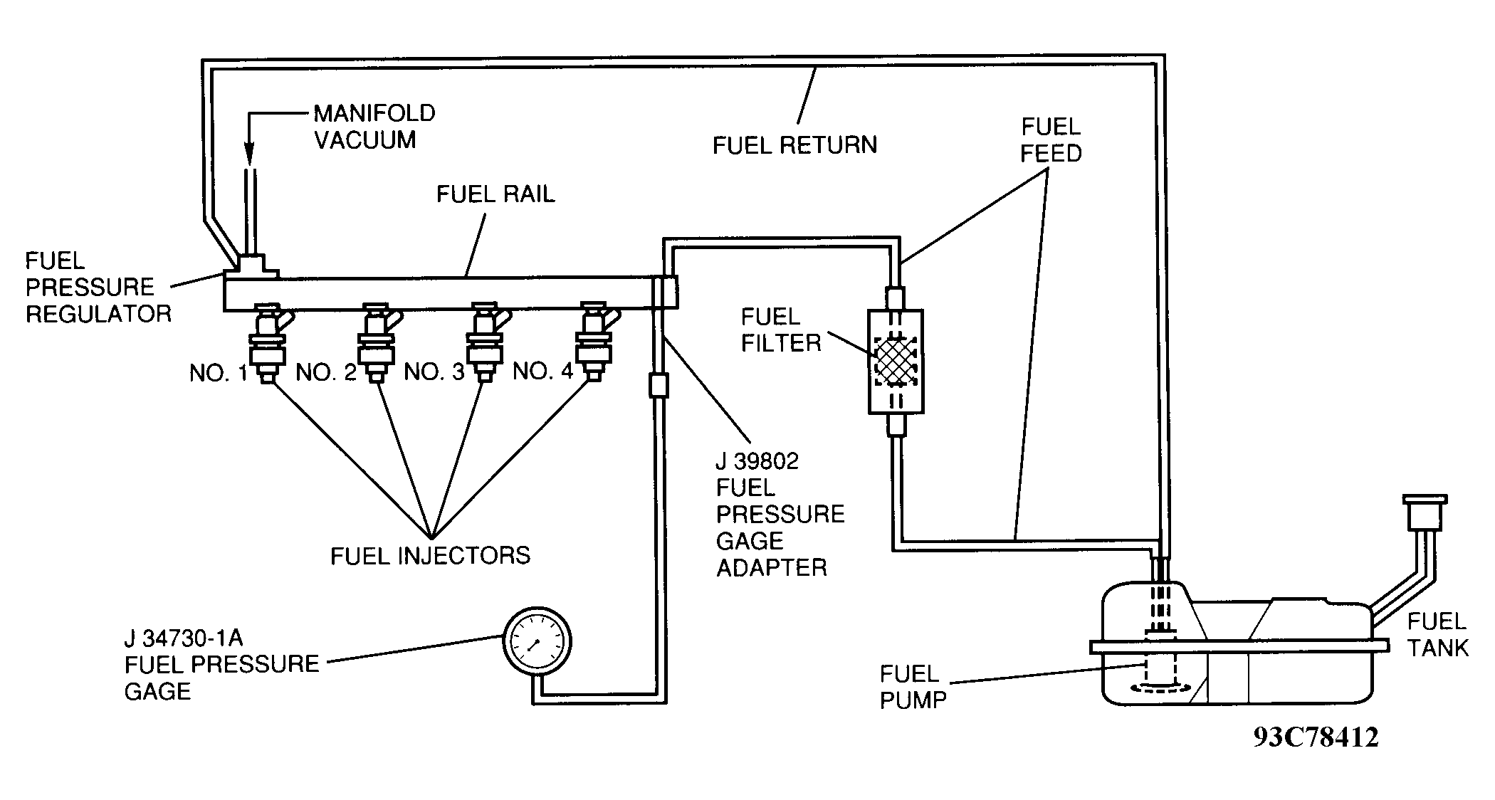 Home >> Geo >> 1993 >> Prizm Base, Automatic >> Repair and Diagnosis >> Engine Performance >> System >> Engine Controls - Basic Testing >> Fuel System >> Fuel Pressure