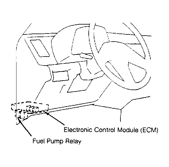 1. Loosen fuel tank cap to release fuel tank pressure. Disconnect electrical connector from fuel pump relay. Fuel pump relay is mounted on ECM, located under left side of instrument panel, near kick panel. See Fig 1 .
