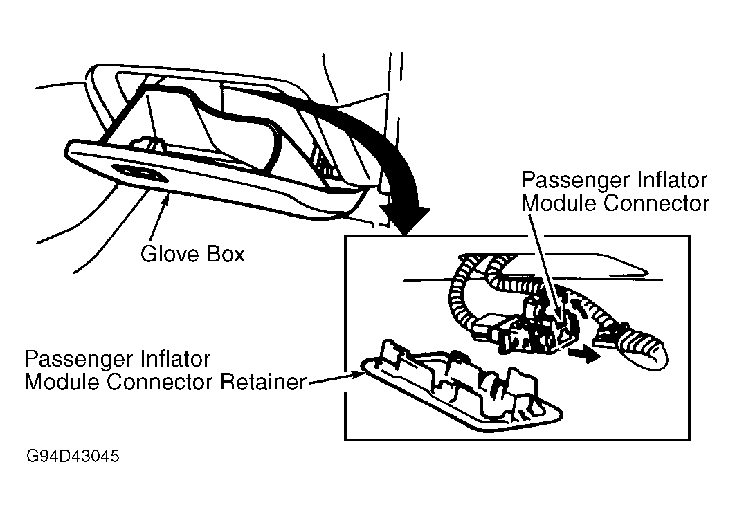 - Lower glove box and remove passenger side air bag connector cover located above glove box. See Fig 3 . Remove Connector Position Assurance (CPA) clip and disconnect Yellow 2-pin connector.