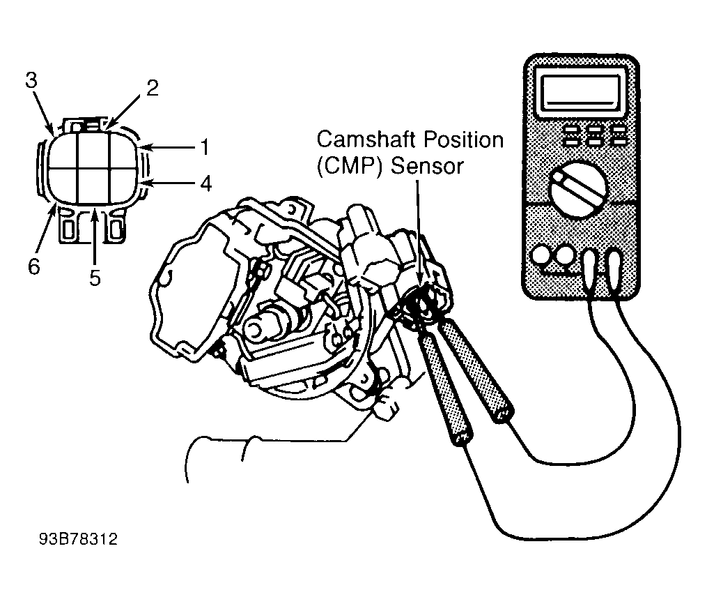 3. Using ohmmeter, measure resistance of distributor connector C1, when cold (14-104°F; -10-50°C), between terminals No. 3 and 6. See Fig 1 . Camshaft Position (CMP) sensor resistance should be 185-275 ohms. If resistance is not as specified, replace distributor housing.