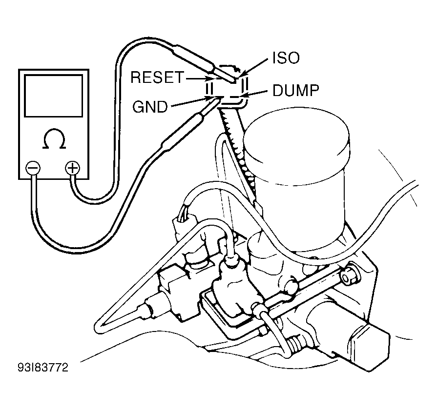 - Check resistance of dump valve solenoid winding between pressure limit valve DUMP and GND terminals. If resistance is not1-3 ohms at approximately 68°F (20°C), replace pressure limit valve.