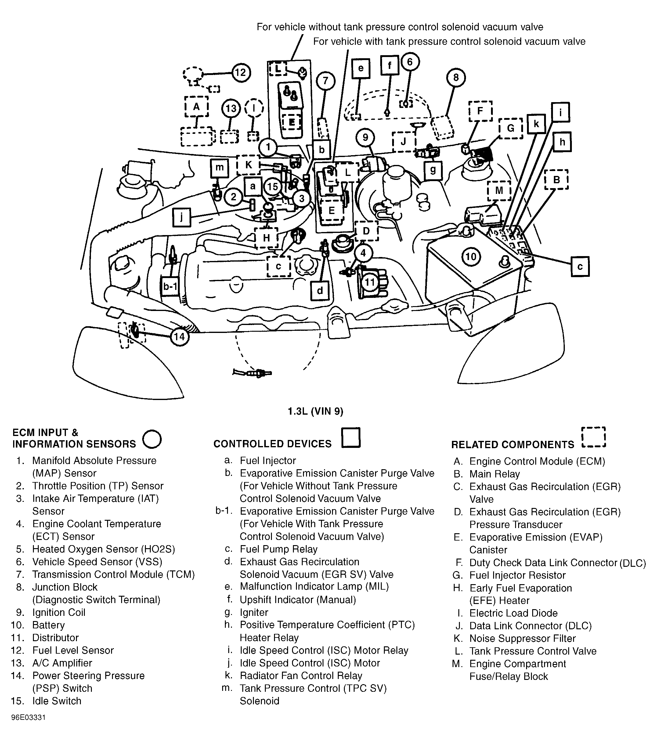 | Engine Control Module (ECM) (1.3L VIN 9) | Behind right side of dash. See Figure. |