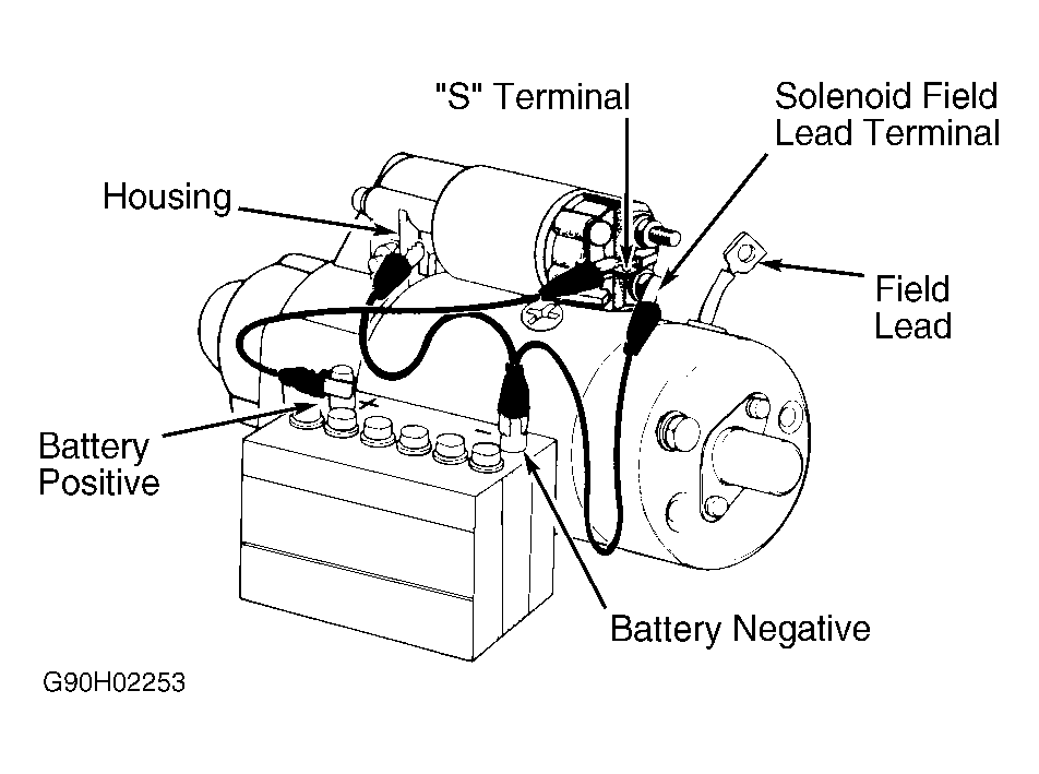 engage starter solenoid for longer than 5 seconds during testing, or damage to coil winding may result.