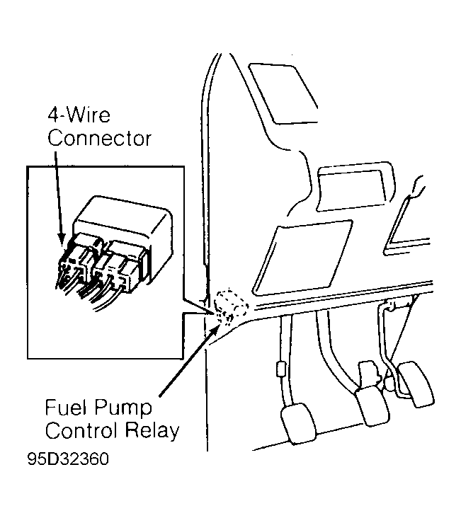 - Place transmission in Neutral or Park and set parking brake. Disconnect 4-wire connector from fuel pump relay, located under left side of dash, left of ECM. See Fig 1