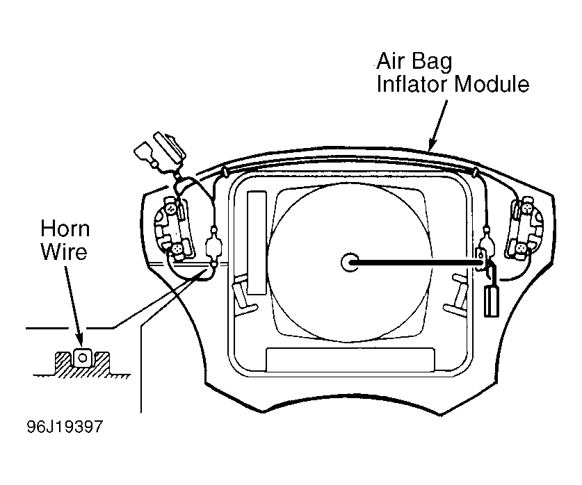 - Fit inflator module on steering wheel and install mounting bolts. Ensure inflator module is aligned. Route inflator module harness neatly on back of module. See Fig 1. Tighten air bag inflator module bolts to specification. See TORQUE SPECIFICATIONS . Connect 2 horn wire connectors. Reconnect negative battery cable. Enable air bag system. See DISABLING & ACTIVATING AIR BAG SYSTEM .