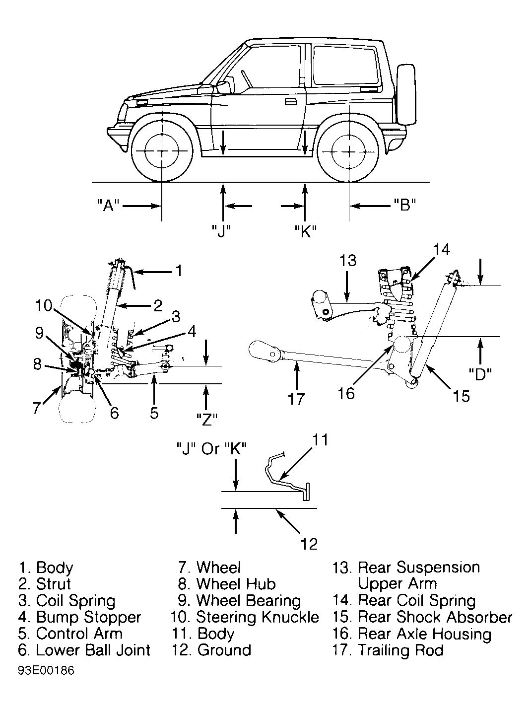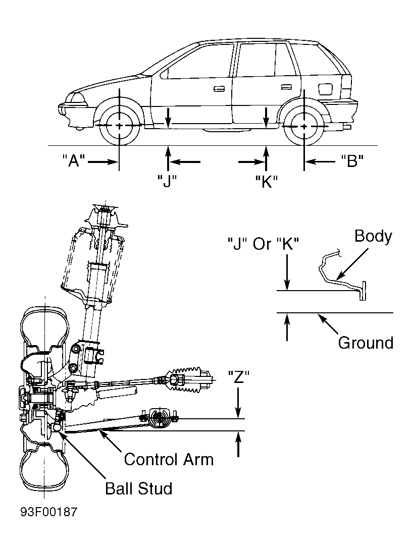 Visually inspect vehicle for signs of abnormal height from front to rear or side to side. Check passenger and luggage compartments for extra heavy items, and remove items if present. If riding height is not within specification, check, repair or replace suspension components. True riding height should be an average of several measurements.