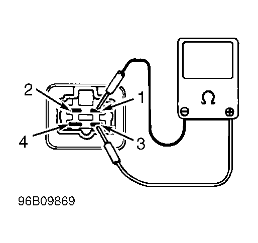 2. Continuity should not be present. If continuity is present, replace relay. Measure resistance between terminals No. 1 and 3. On models produced in Japan, resistance should be 61-75 ohms. On models produced in Canada, resistance should be 79-95 ohms. If resistance is not as specified, replace relay. Apply battery voltage and ground to terminals No. 1 and 3. Continuity should now be present between terminals No. 2 and 4. If continuity is not present, replace relay.