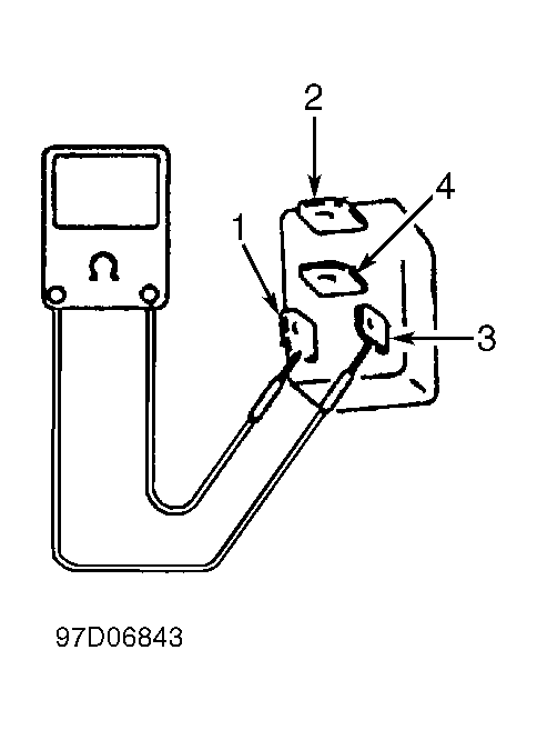 1. Disconnect negative battery cable. Remove main relay. Main relay is located under instrument panel, attached to side of heater case. Using an ohmmeter, measure resistance between terminals No. 2 and 4. See Figure or Figure .
