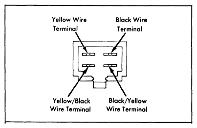 - Connect voltmeter positive probe to Yellow/Black wire terminal at emission control box connector. Connect negative probe to known good ground (Black ground wire). See Fig 1. Start engine.
