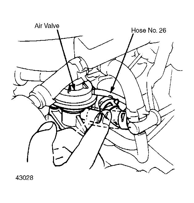 - If no vacuum is present, disconnect vacuum hose number 26 from air valve. Check for vacuum at hose number 26 during deceleration above 3500 RPM.