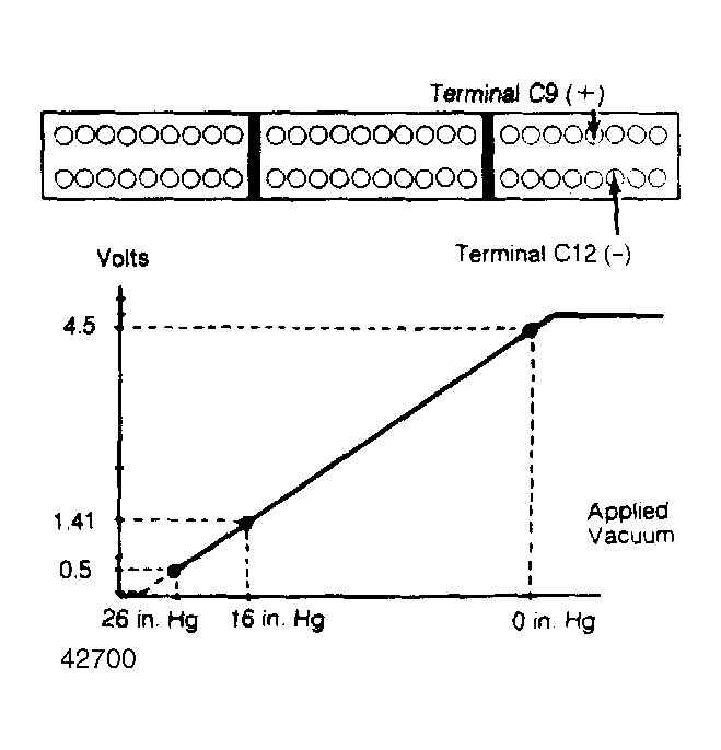 2. If voltages are out of specifications, check for open or short circuit between ECU and atmospheric pressure sensor. Replace sensor if necessary.