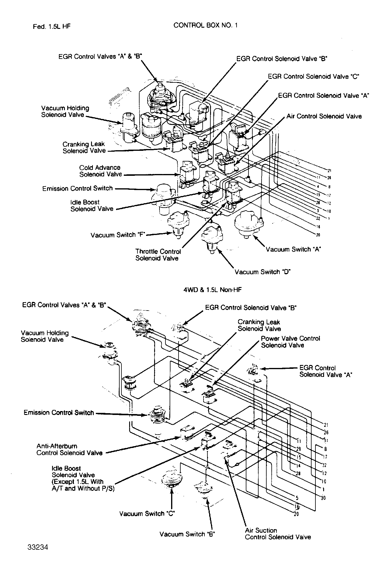 | Emission Control Box No. 1 | On left side of engine compartment. See Figure & Figure . |