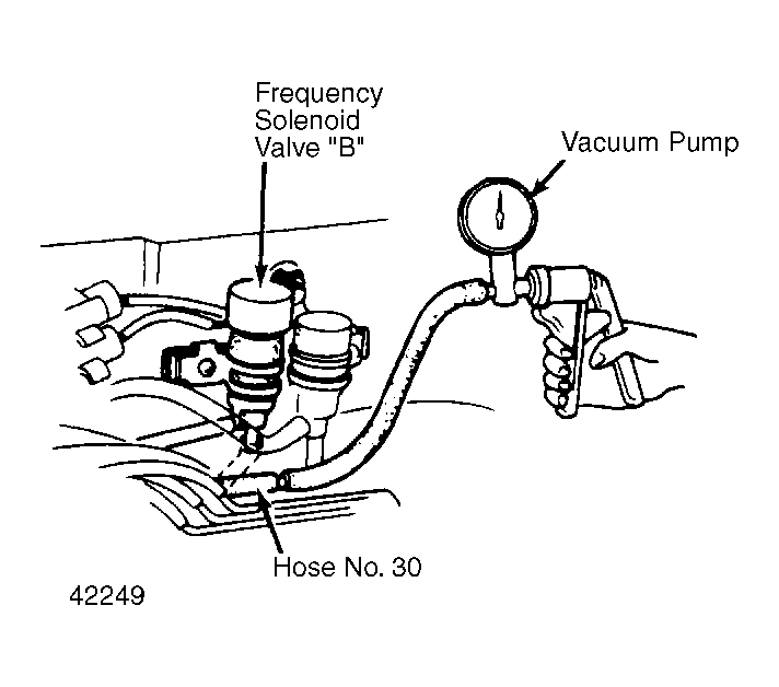 - Disconnect hose No. 30 from the frequency solenoid valve B and connect a vacuum gauge to hose. See Fig 1 .