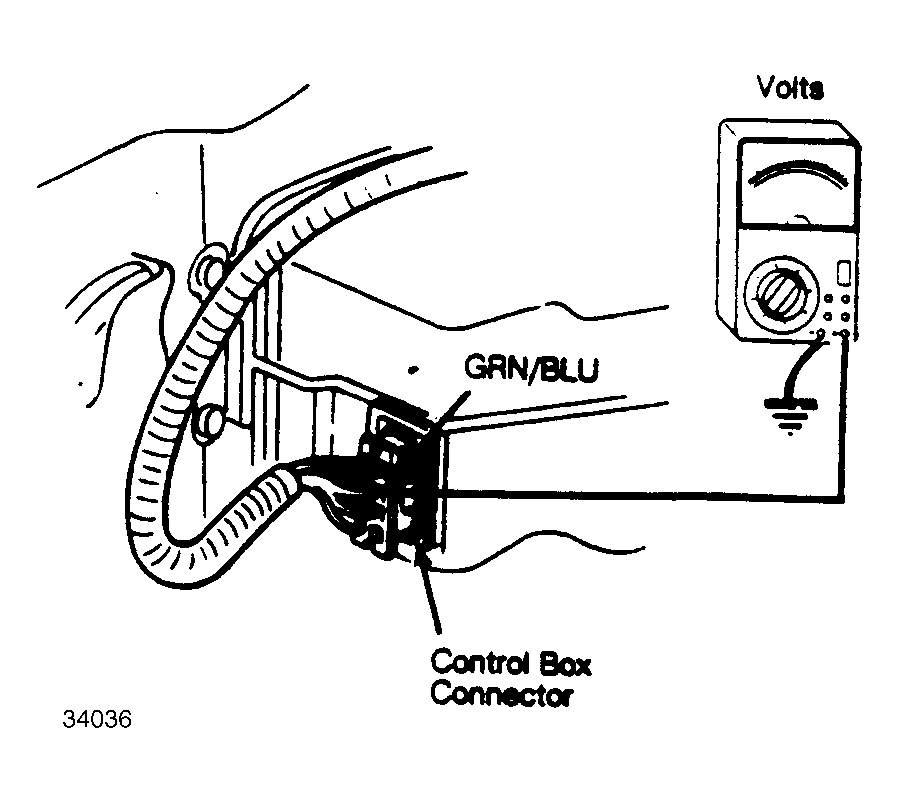 - With vacuum gauge connected to hose removed from power valve, ground Red wire of control unit and check that vacuum drops to zero. If vacuum drops, system is OK. If vacuum does not drop, check voltage at power valve control solenoid in control box. See Fig 1 . Connect negative lead of voltmeter to ground and connect positive lead to Green/Blue wire at control box connector.