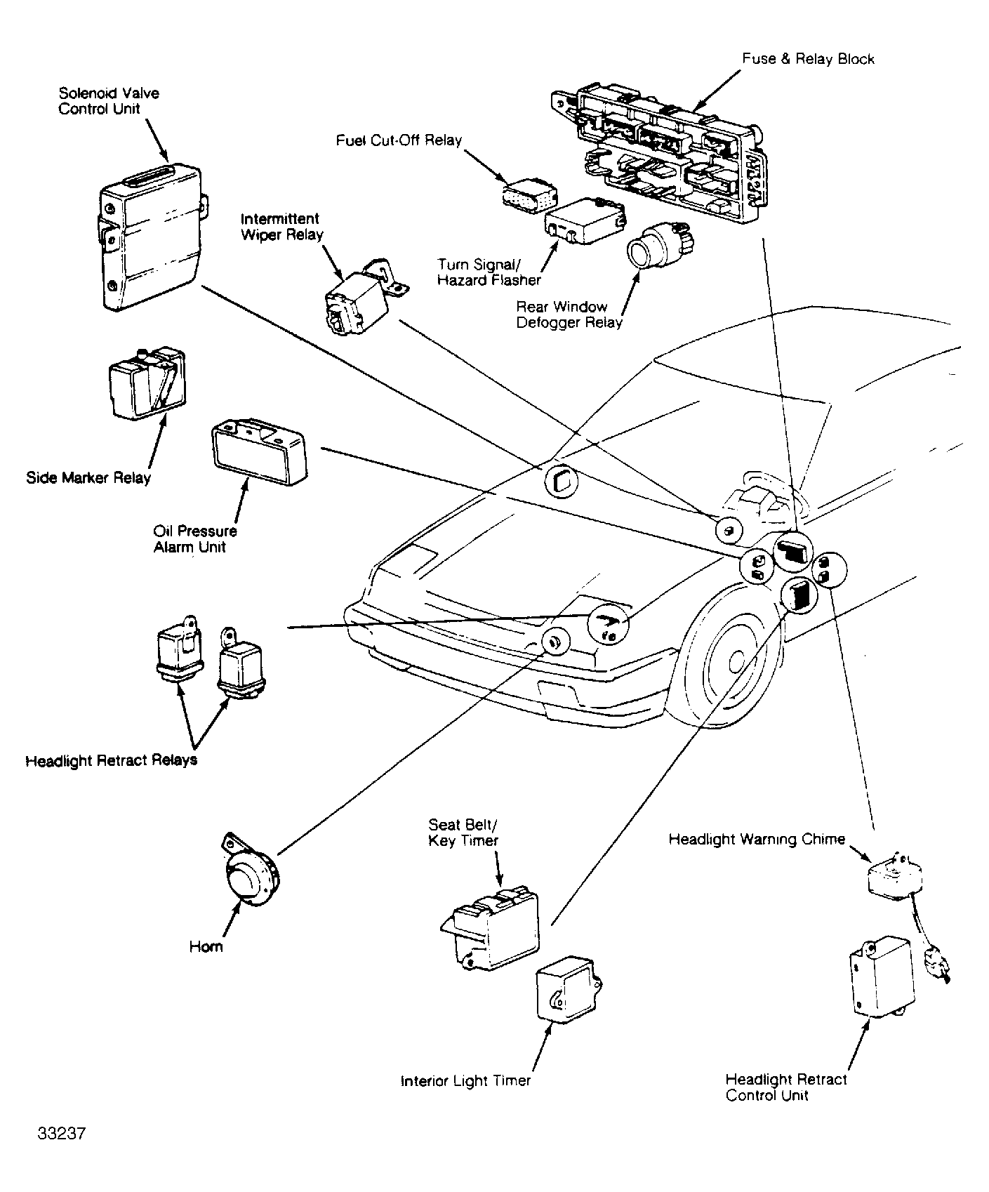 | Solenoid Control Valve Unit (PGM-FI) | Behind left rear quarter panel. |