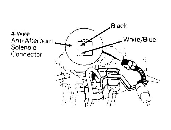 - Disconnect vacuum hoses from anti-afterburn solenoid. Connect vacuum pump to lower solenoid fitting. Start engine and apply vacuum. If vacuum holds, go to step 4). If vacuum does not hold, stop engine. Block rear wheels and raise front of vehicle. Support with safety stands.