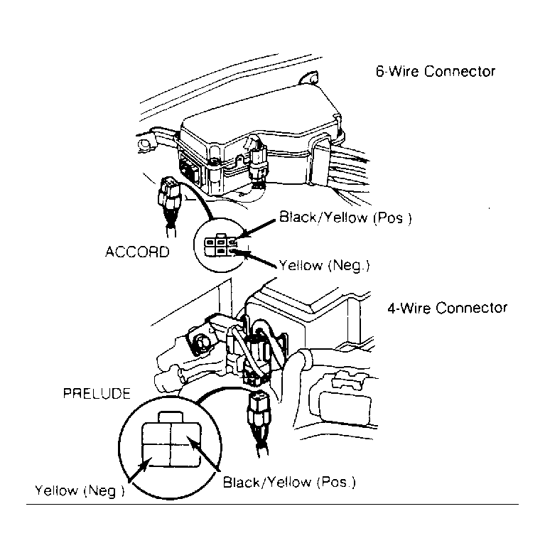 - If no battery voltage was present in step 6), measure voltage between Black/Yellow terminal and body ground. If no battery voltage is present, repair open in Black/Yellow wire between connector and No. 11 (Accord) or No. 12 (Prelude) fuse or replace fuse.