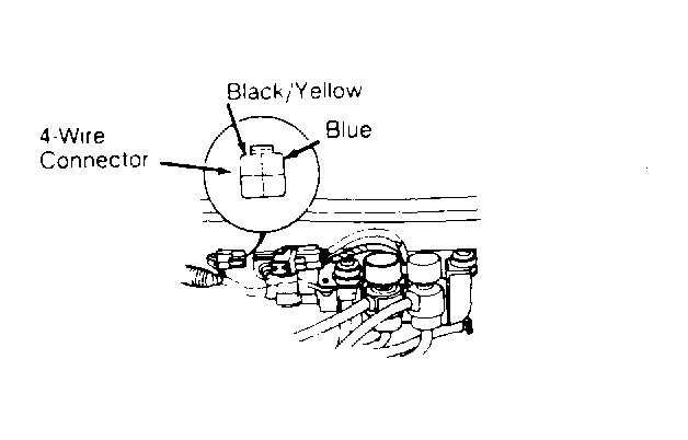 . Measure voltage between Black/Yellow (pos.) and Blue (neg.) wire terminals. If battery voltage is present, replace solenoid.