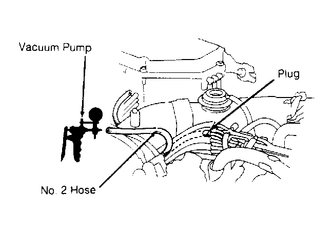 - Warm engine to operating temperature (cooling fan comes on). Turn off ignition. Remove "EFI/ECU" fuse in under-hood relay panel for 10 seconds to reset ECU. Remove No. 2 vacuum hose from manifold vacuum fitting. Plug fitting. See Fig 1