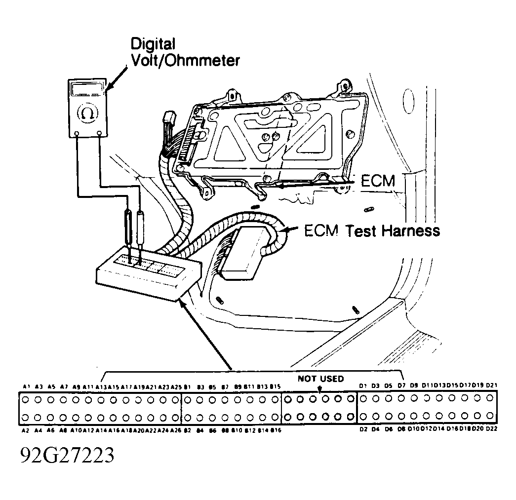 When directed by chart to install ECU test harness, turn ignition off. Connect ECU Test Harness (07LAJ-PT3010A ) between ECU and connector. See Fig 1 . Follow code chart directions.