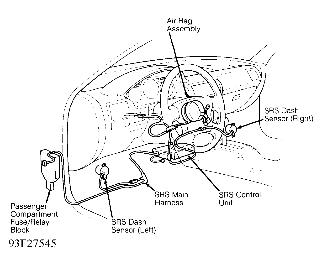 | SRS (Air Bag) Control Unit | Under center of dash, forward of floor console. See Figure . | |
