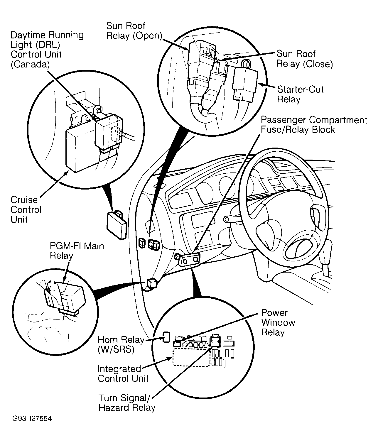 | PGM-FI Control Unit | Behind right side of dash, above kick panel. | |