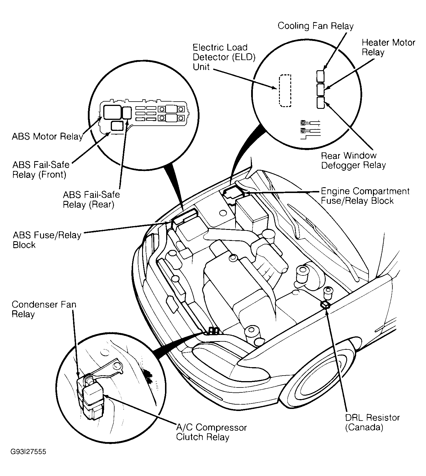 | Overhead View of Engine Compartment | Integrated with engine compartment fuse/relay block. See Figure . | |