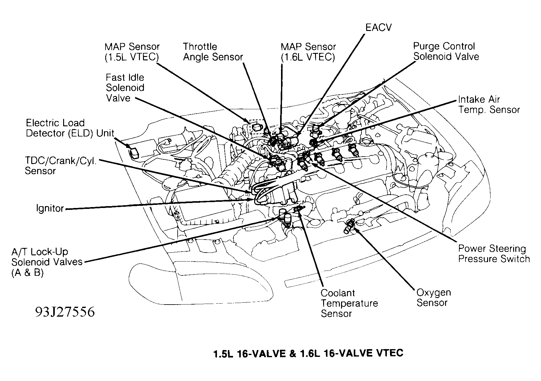 | 1.5L 16-Valve & 1.6L 16-Valve VTEC | Integrated with engine compartment fuse/relay block. See Figure . | |