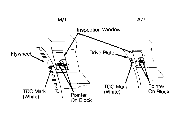 table. TDC mark (White) and timing mark (Red) are on flywheel (M/T) or drive plate (A/T). See Fig 2