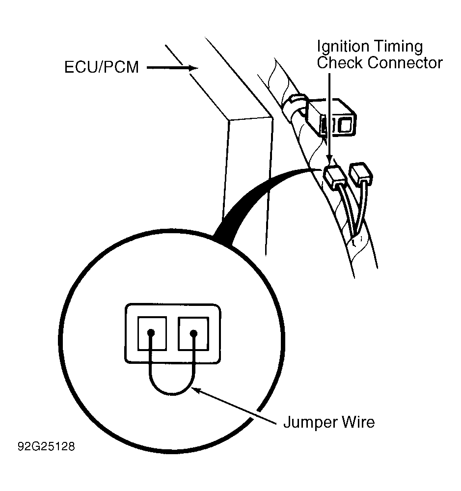 - Ignition timing check connector is located behind passenger-side kick panel. See Fig 1 . Connect jumper wire between Brown and Black wire terminals.