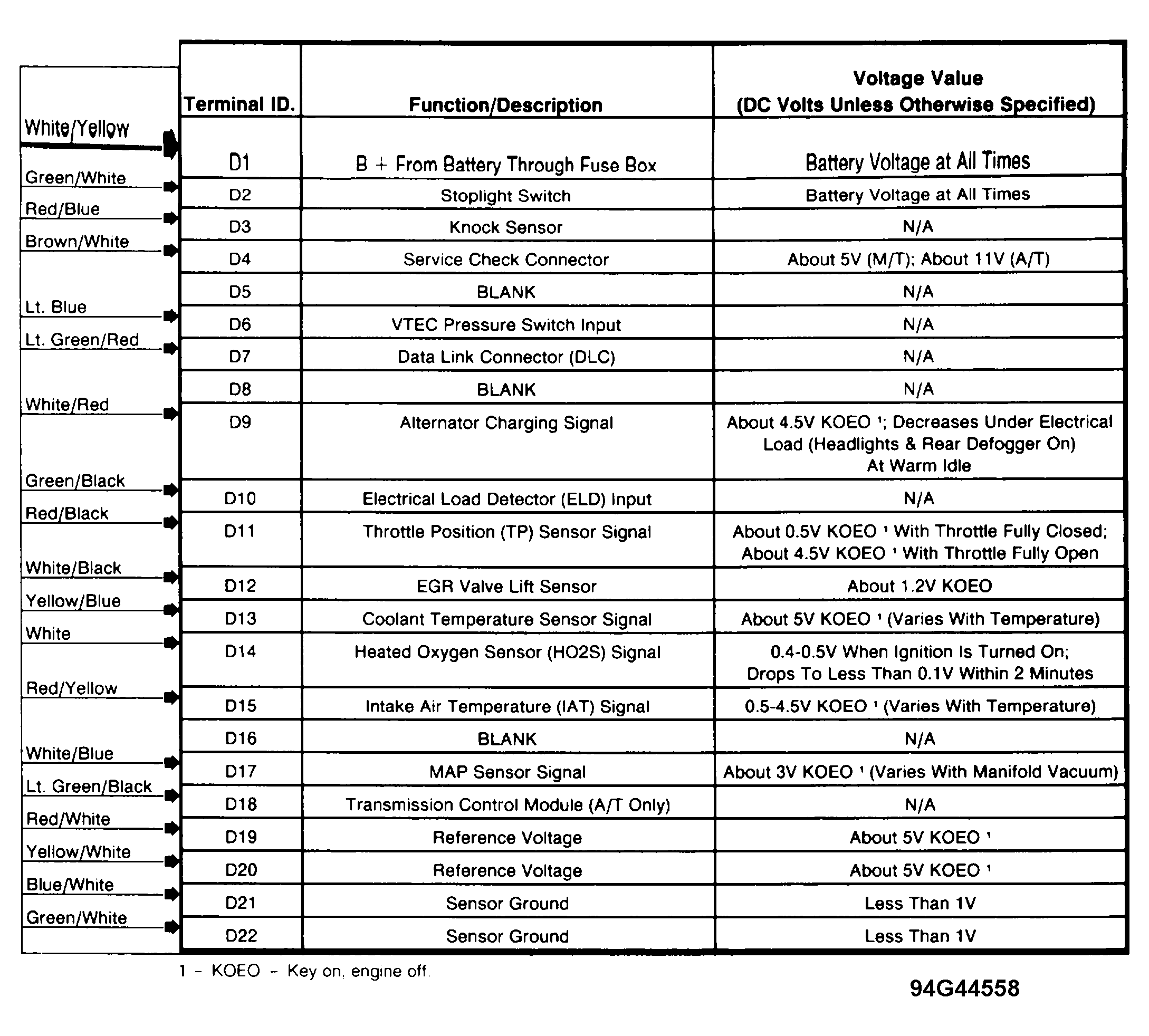Engine Controls - Pin Voltage Charts: Introduction