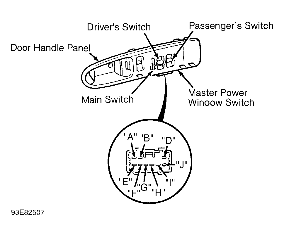 Remove power window master switch. See procedures under MASTER POWER WINDOW SWITCH under REMOVAL & INSTALLATION. Using an ohmmeter, check resistance of switch terminals with switch in indicated positions. If continuity is not as specified, replace switch. See Fig 1 . See POWER WINDOW MASTER SWITCH TEST table.
