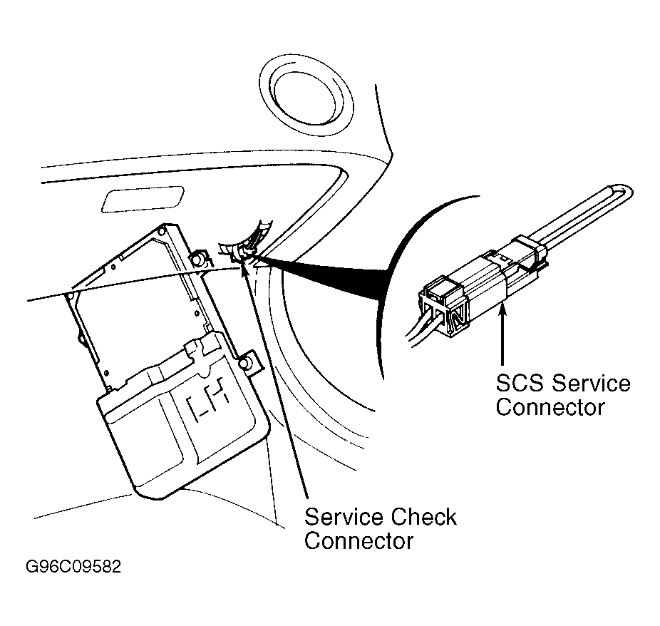 - Start engine and run under no-load condition until cooling fan comes on. Let engine idle. Locate Blue 2-pin service check connector, located below right side of dash at kick panel, and pull it out of its holder. Service check connector contains a Brown wire and Black wire. See Figure and Figure . Install SCS Service Connector (07PAZ-0010100) in Blue 2-pin service check connector. See Fig 1 .