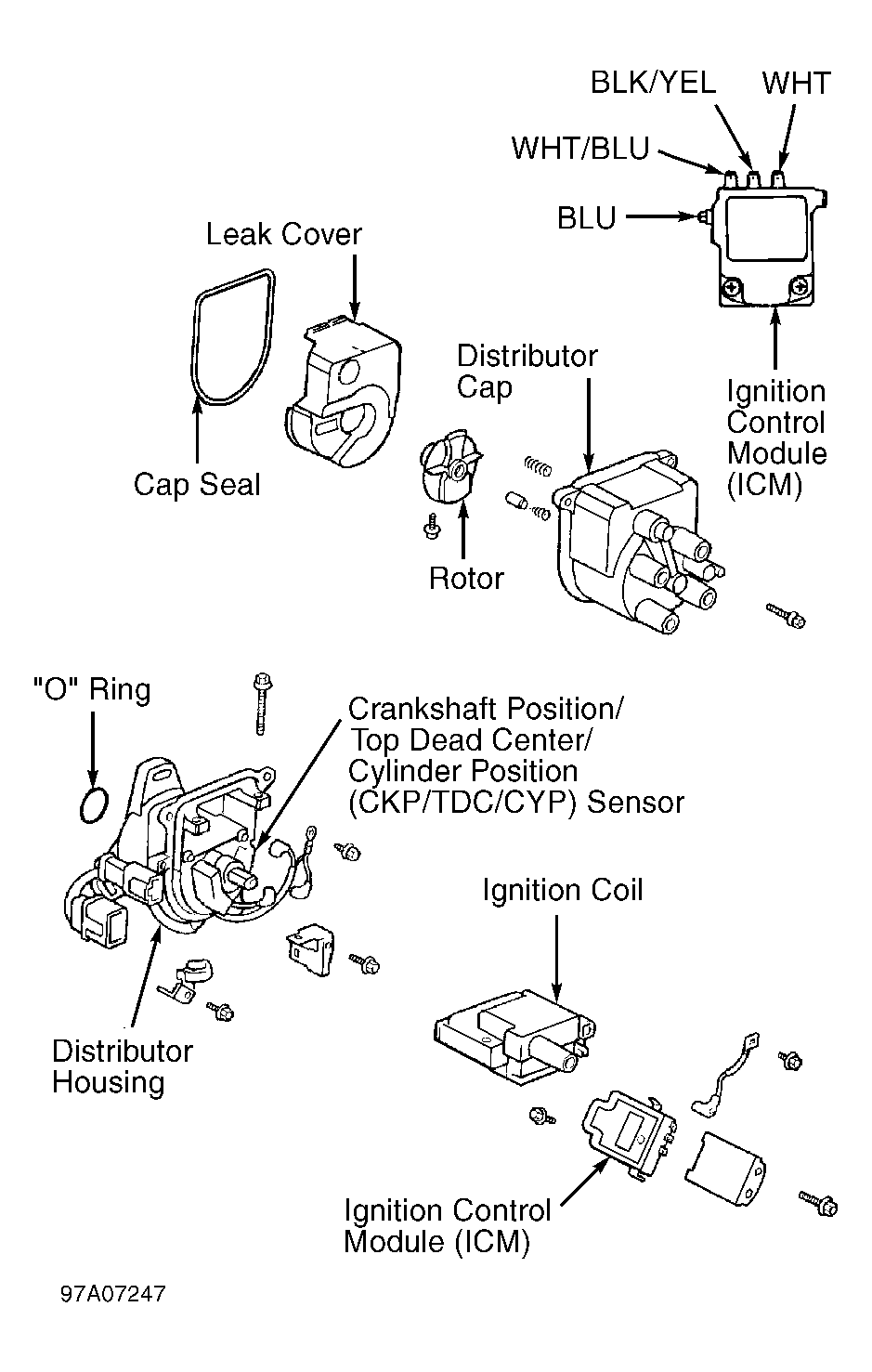 , ensure ignition, fuel and emissions systems are operating properly. Ignition Control Module (ICM) is located in distributor housing. See Figure