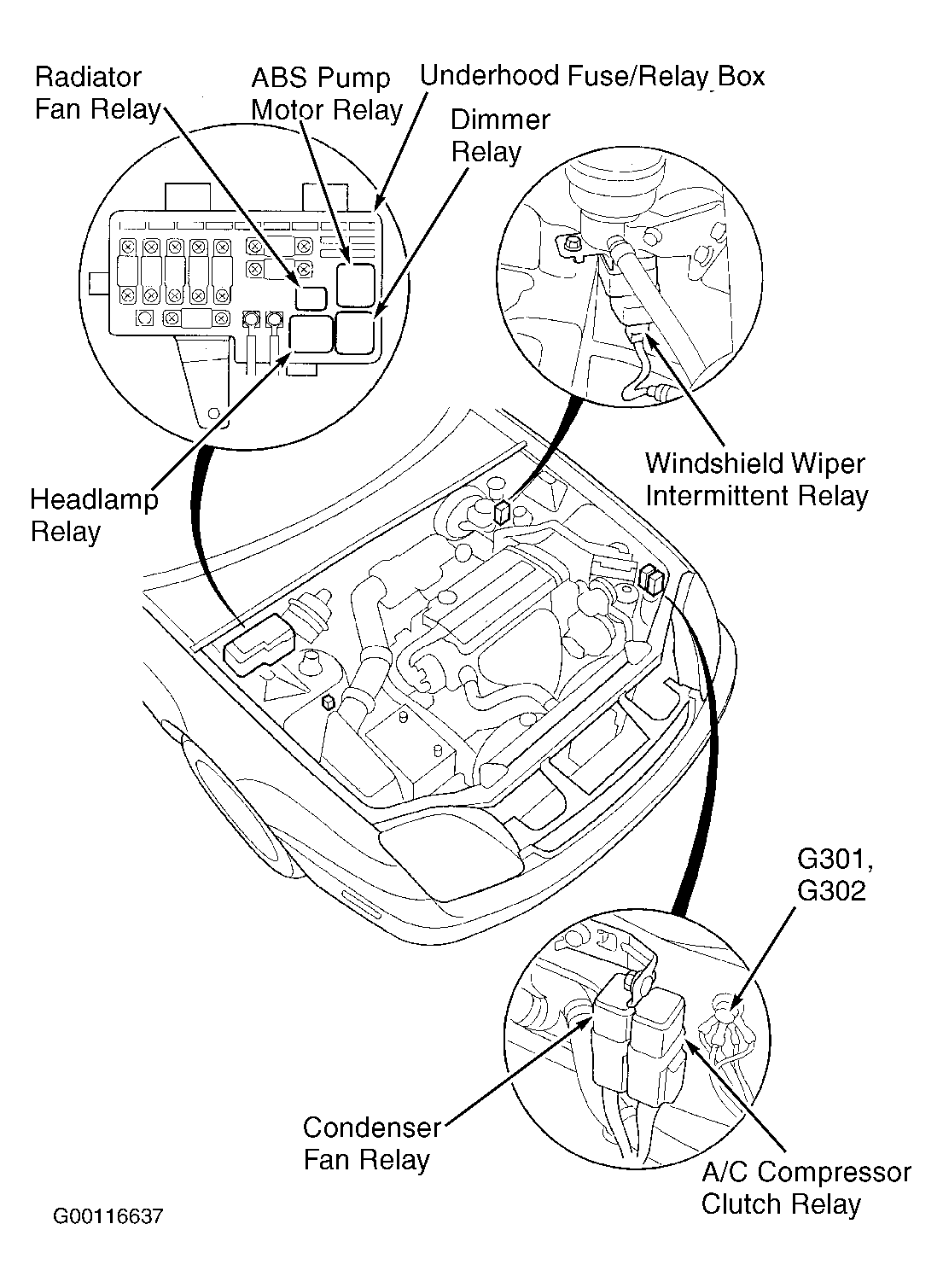 | Underhood Fuse/Relay Box | On right rear corner of engine compartment. See Figure . |