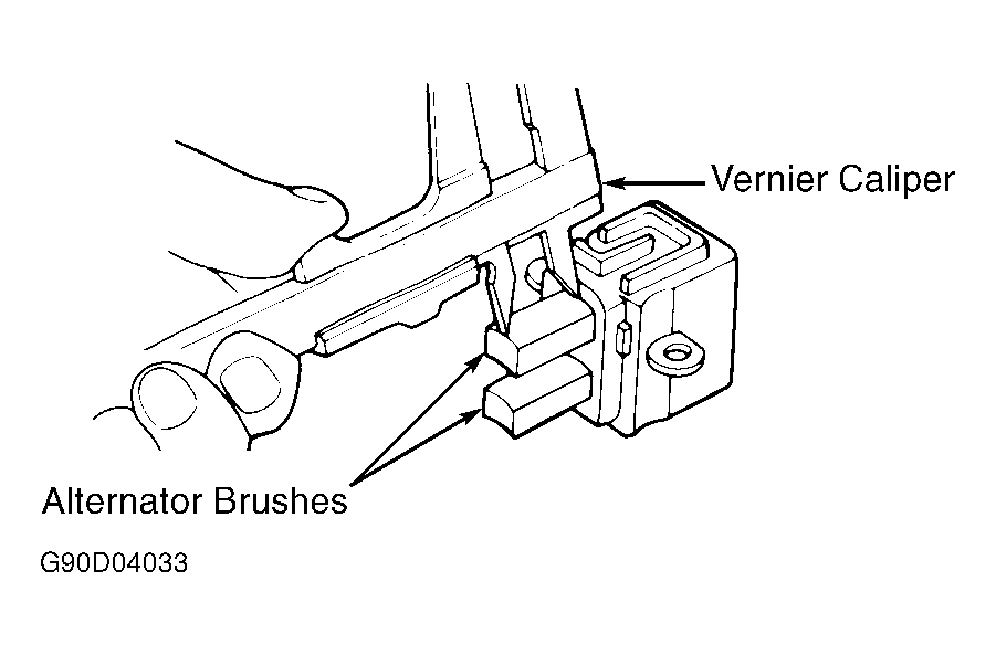 Remove brush holder from generator. Using vernier caliper, measure brush length. See Fig 1 and Fig 2 . If brush length is not as specified, replace brushes. See BRUSH LENGTH SPECIFICATIONS table.