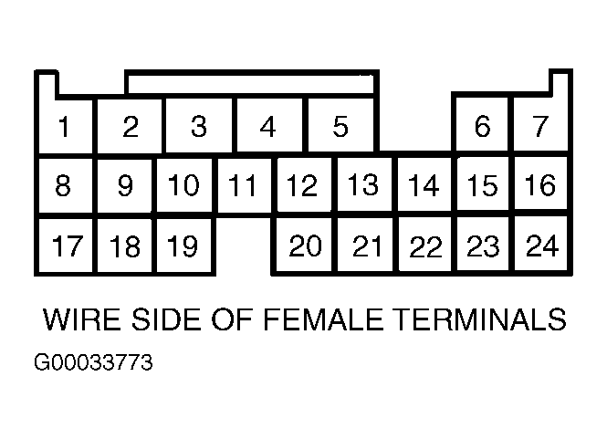 - Turn headlights and ignition off. Disconnect PCM connector "B" (24-pin connector). Check continuity of White/Green wire between PCM connector "B" (24-pin connector) terminal No. 6 and generator 4-pin connector terminal No. 2. See Figure and Figure . If continuity is present, repair generator. See appropriate GENERATORS & REGULATORS article in STARTING & CHARGING SYSTEMS. If continuity is not present, repair open in White/Green wire between generator and PCM connectors. See WIRING DIAGRAMS article.
