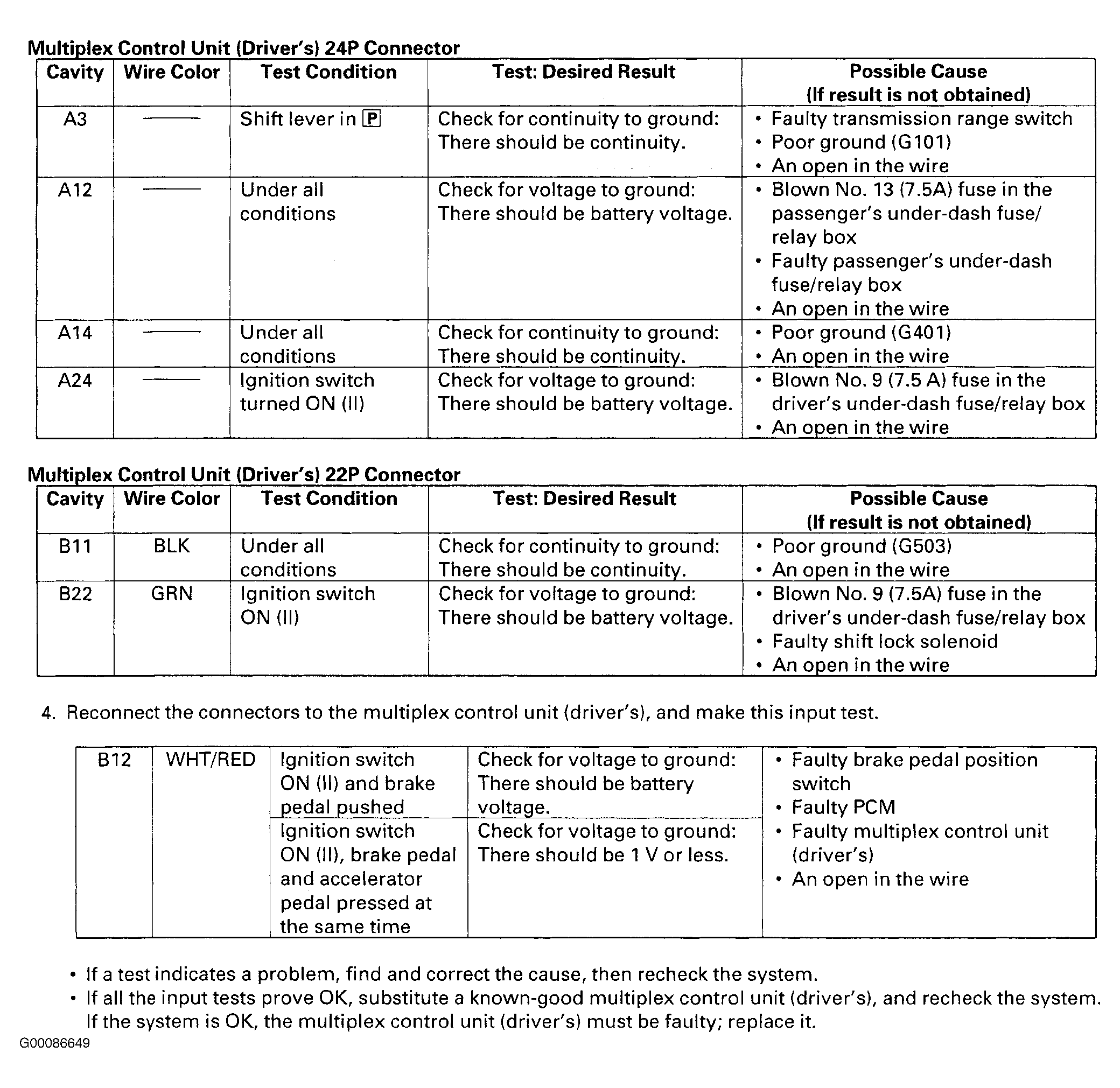 - Reconnect connectors to the multiplex control unit (driver's), and before conducting input test at terminal B12.