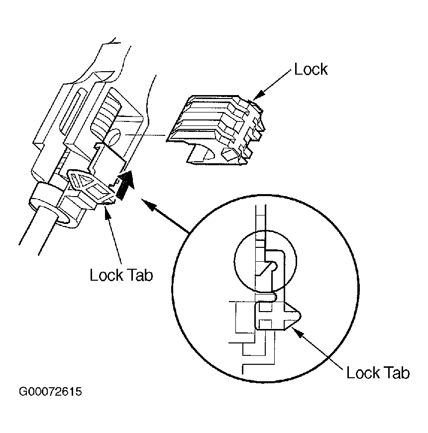 - Pry up the tabs on the O/D switch/shift lock solenoid/park pin switch connector to release the lock. See Figure.