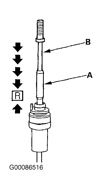 - If necessary, push the shift cable until it stops, then release it. Pull the shift cable back one step so that the shift cable is in "R" position. See Figure. Do not hold the shift cable guide (A) to adjust the shift cable (B).