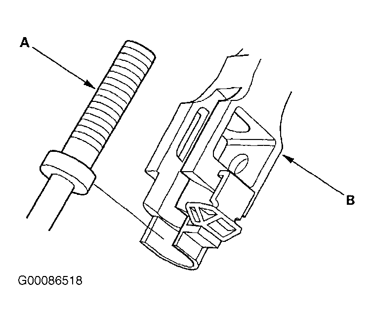 - Install the shift cable end (A) in the shift cable end holder (B). See Figure. Keep the shift cable end and end holder free of grease.