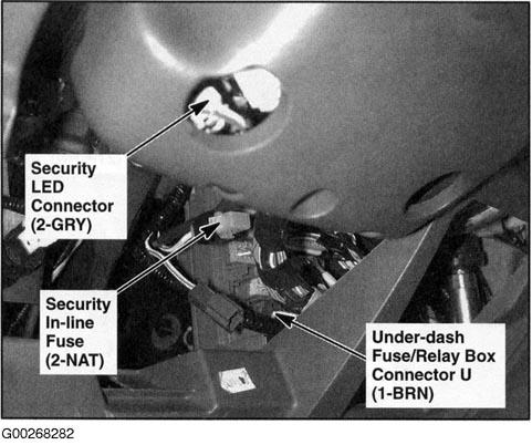 | Security In-Line Fuse | Under left side of dash. See Figure . |