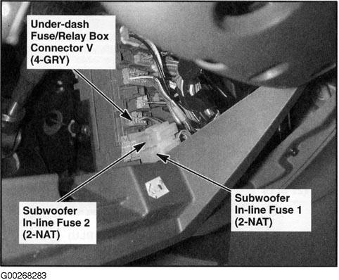 | Subwoofer In-Line Fuse 2 | Under left side of dash. See Figure . |